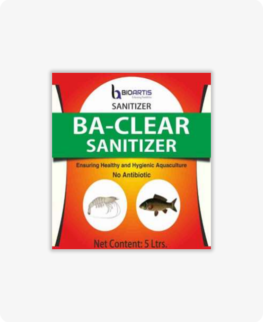 BA-CLEAR Sanitizer is a specially formulated liquid chemical designed to sanitize pond water, promoting good health, hygiene, and sanitation in farms and hatcheries. This product helps prevent diseases in shrimp, prawn, and fish.
