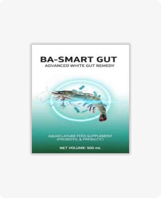 Ba- Smart gut White gut remedy Our product combines prebiotics (mono/polysaccharides) and probiotics (Bacillus, Lactobacillus, Saccharomyces, Streptomyces) to modulate the gut micro biome to boost immunity and restore hepatopancreatic function.